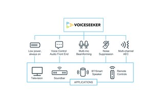 VoiceSeeker is a multi-microphone voice control audio front-end signal processing solution. VoiceSeeker provides high performance beamforming and multi-channel acoustic echo cancellation (AEC) to enable reliable trigger word detection and payload accuracy. VoiceSeeker does not require pre-determined fixed microphone geometries, making it an ideal choice for customers who need flexibility in microphone placement. Effective at up to 10 meter and beyond, VoiceSeeker’s beamformer is the optimized for far-field voice control.
