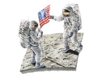 First words from the Moon to the Earth relayed by a Motorola transponder.