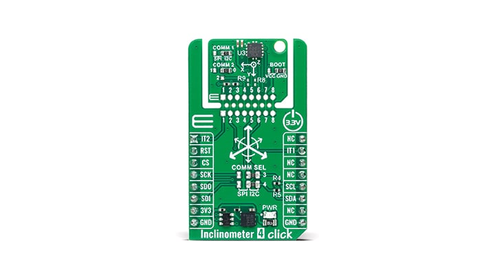 boards. Inclinometer 4 click is fully compatible with the mikroBUS™ socket and can be used on any host system