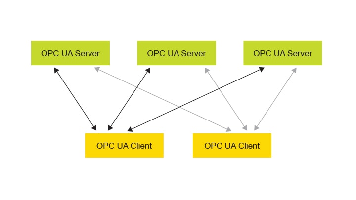 OPC UA also defines a broker-less model for information exchange. In this model, no additional software/middleware is required.