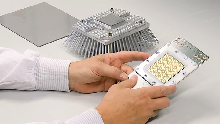 To prevent the heat sink from damaging the small, delicate MMW9014K package, we kept the clamp force to less than 1 gram per ball, and thereby prevented shorting due to solder-ball creep over the antenna’s operating life.