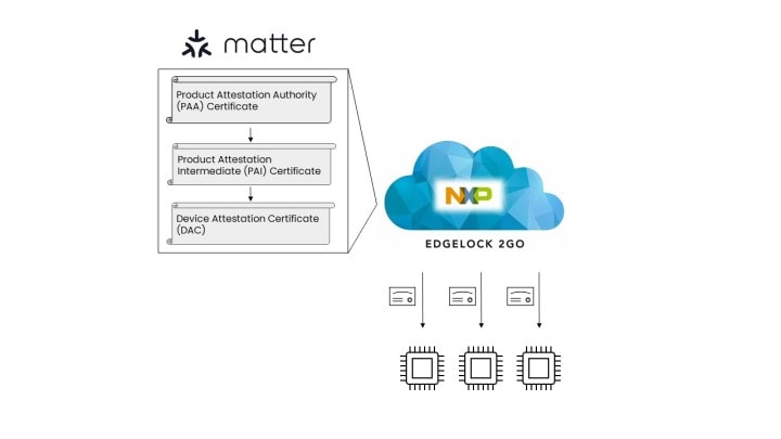 The CSA has approved NXP as a Product Attestation Authority (PAA), using using EdgeLock 2GO for Matter