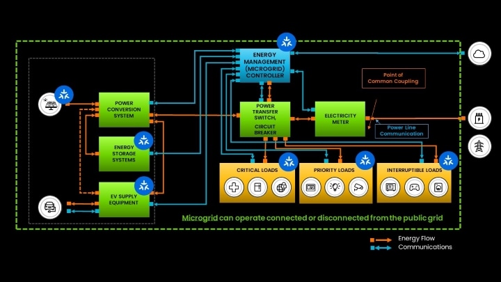 the public grid to balance the load and prioritizes on-site energy distribution.