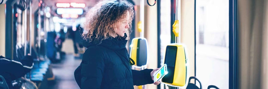 people can now use a mobile app in combination with their NFC-enabled phones to purchase tickets and board public transport.