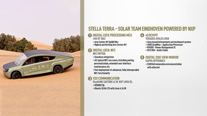 Gino: We use and offer technology from every area of NXP. The exact products involved will depend on the design. For the Stella Terra, the focus is on automotive, but different student projects will make use of technologies from other business and product lines.