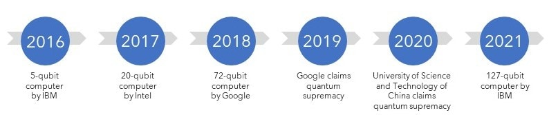 Qubit by qubit, there has been a slow but steady progress — from the first experimental demonstration of a quantum algorithm working on 2 qubits in 1998, through 12 qubits in 2006, to Google’s 72-qubit quantum chip in 2018, leading to IBM’s 127-qubit quantum processor in 2021 — gaining computational power at an exponential rate.