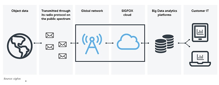 The connectivity requirements for sensors and tags are minimal, and the Sigfox