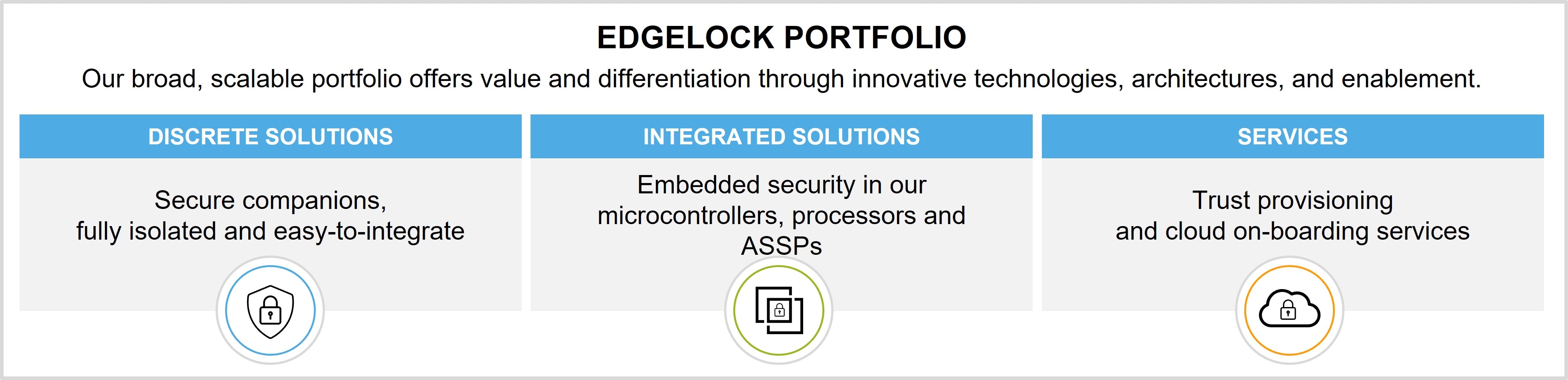 The EdgeLock Assurance Program specifically includes a Certified EdgeLock Assurance category for products under 3rd party security evaluation according to a defined framework, such as Common Criteria or Security Evaluation Standard for IoT Platforms (SESIP).