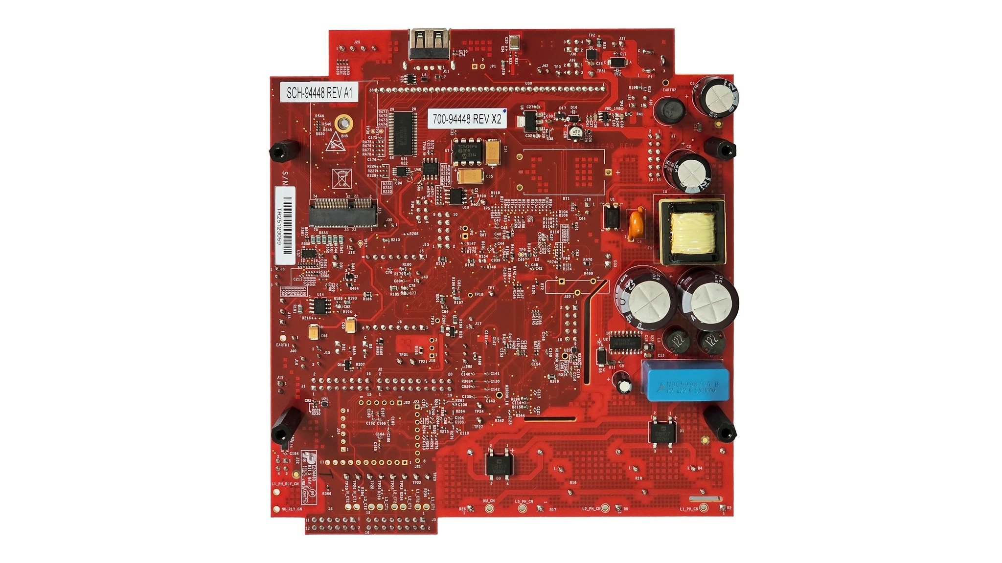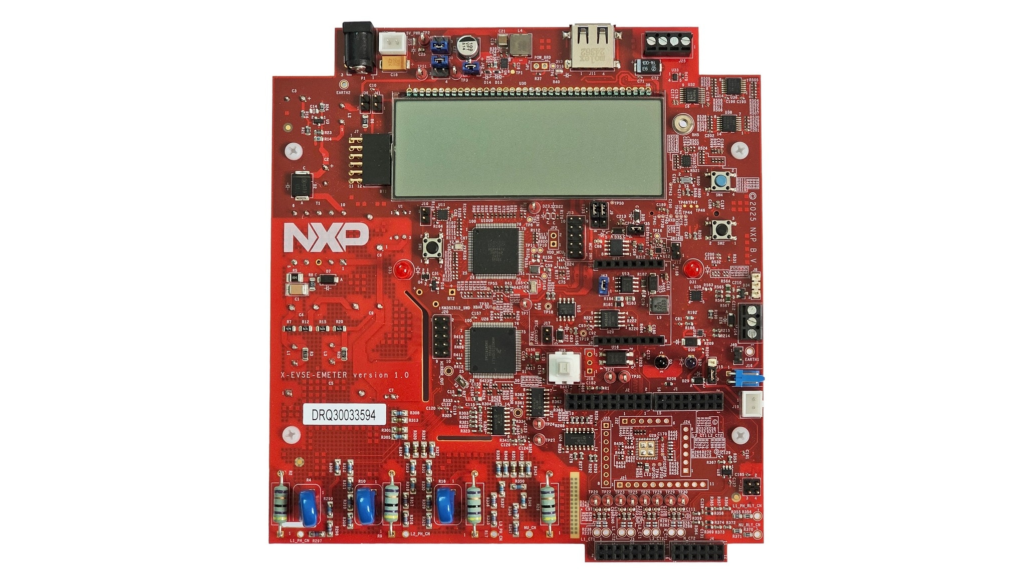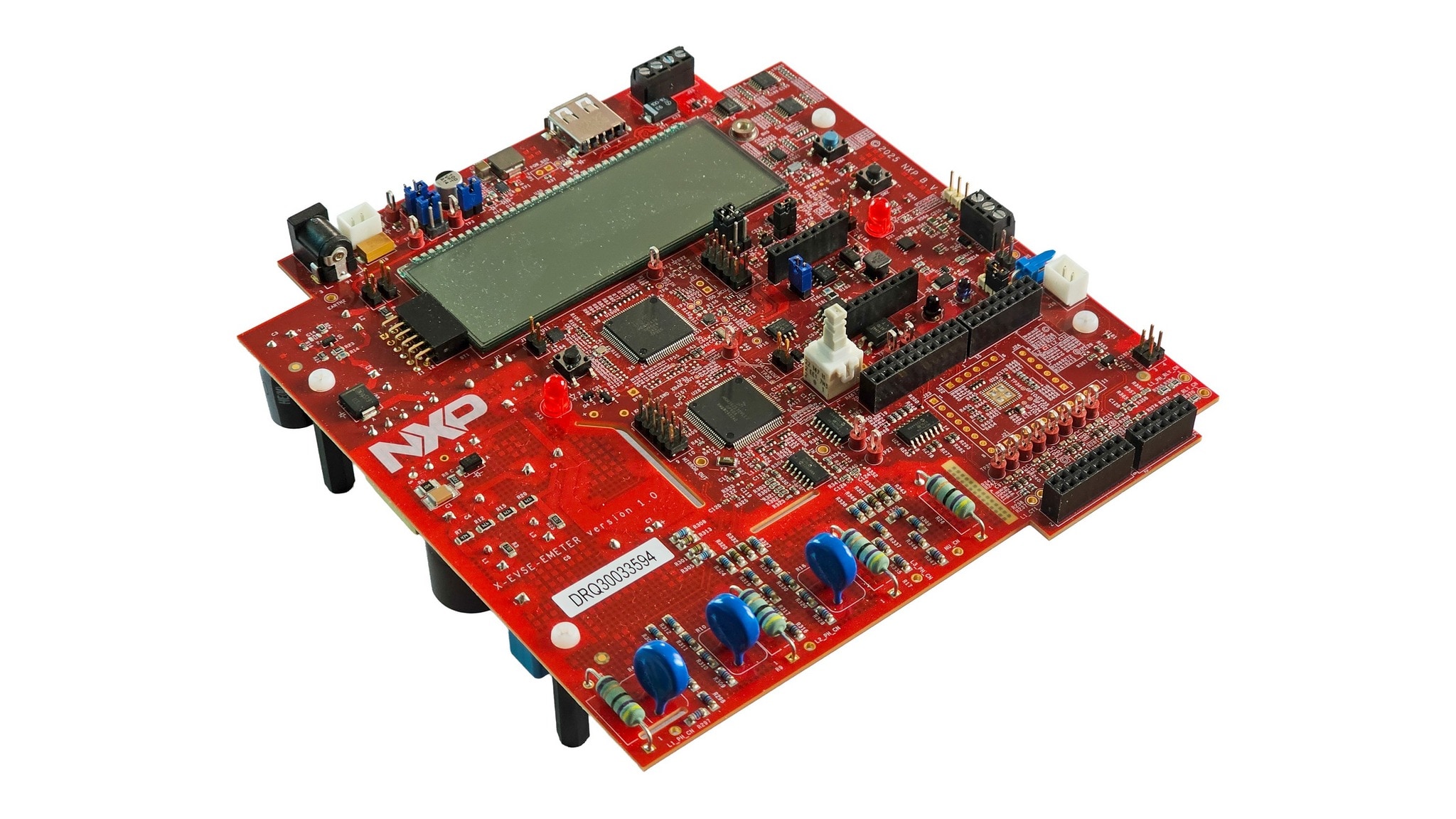 The board hosts an MCX N947 or an MCX N236 for the SAE J1772 PWM and FuSa operations, a TJA1021T Local Interconnect Network (LIN) transceiver for SAE J3068, a MKM35Z512 Metrology microcontroller unit (MCU) with integrated Analog Frond-Ends (AFEs) or an optional NXP external AFE.
