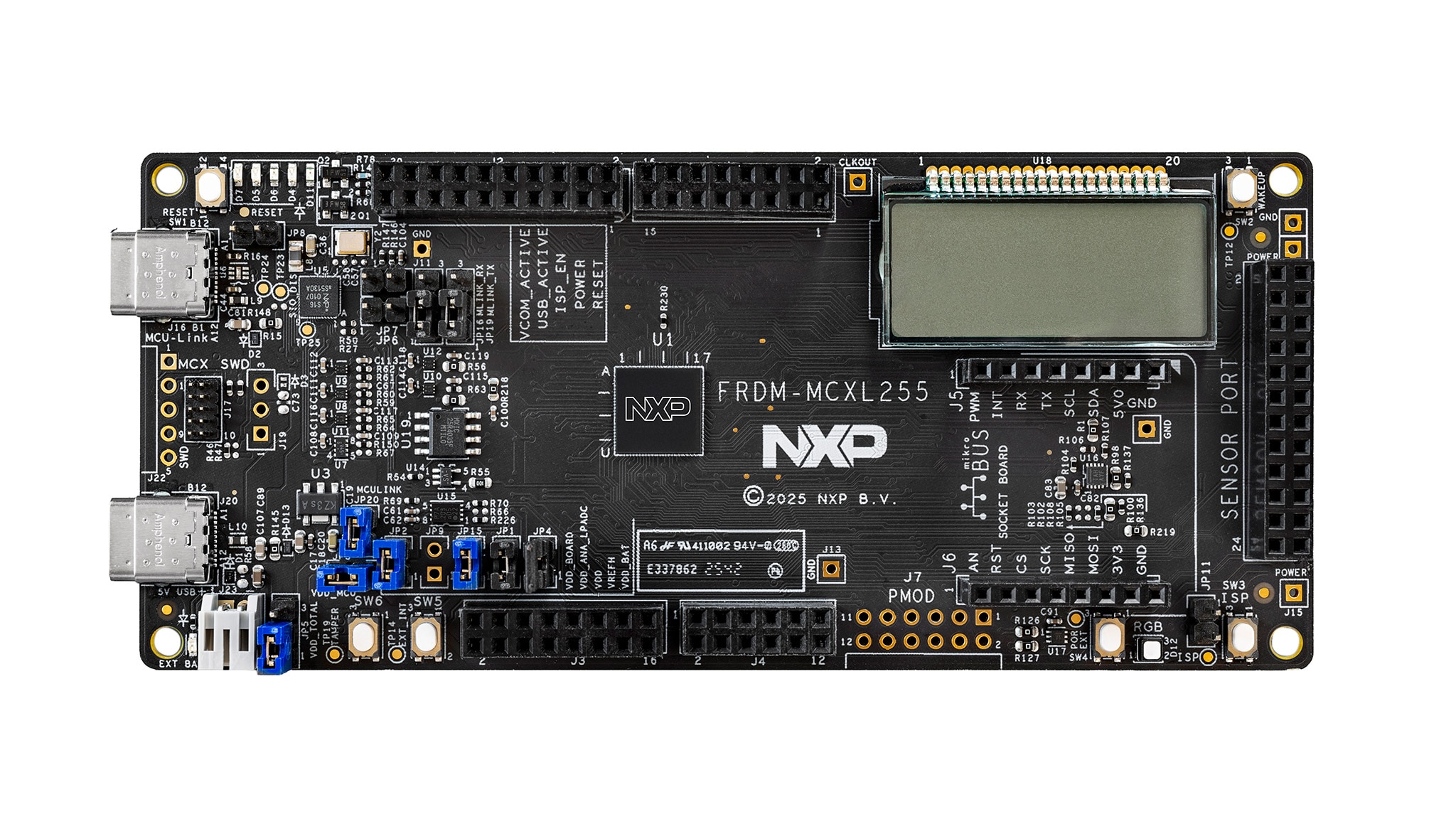 FRDM‑MCXL255 boards are compact and scalable development platforms for rapid prototyping with the MCXL255/254/253 microcontroller units (MCUs). They support a wide operating voltage range from 1.8 V to 3.3 V, enabling flexible use across various applications. The boards provide industry‑standard headers for easy access to MCU I/Os, integrated open‑standard serial interfaces, external flash memory, and an on‑board MCU‑Link debugger.