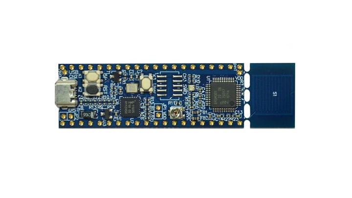 The LPC845 breakout board features an on-board CMSIS-DAP debug and VCOM port, RGB user LEDs, capacitive touch button, user potentiometer and allows an easy prototyping experience with access to 38 LPC845 port pins.