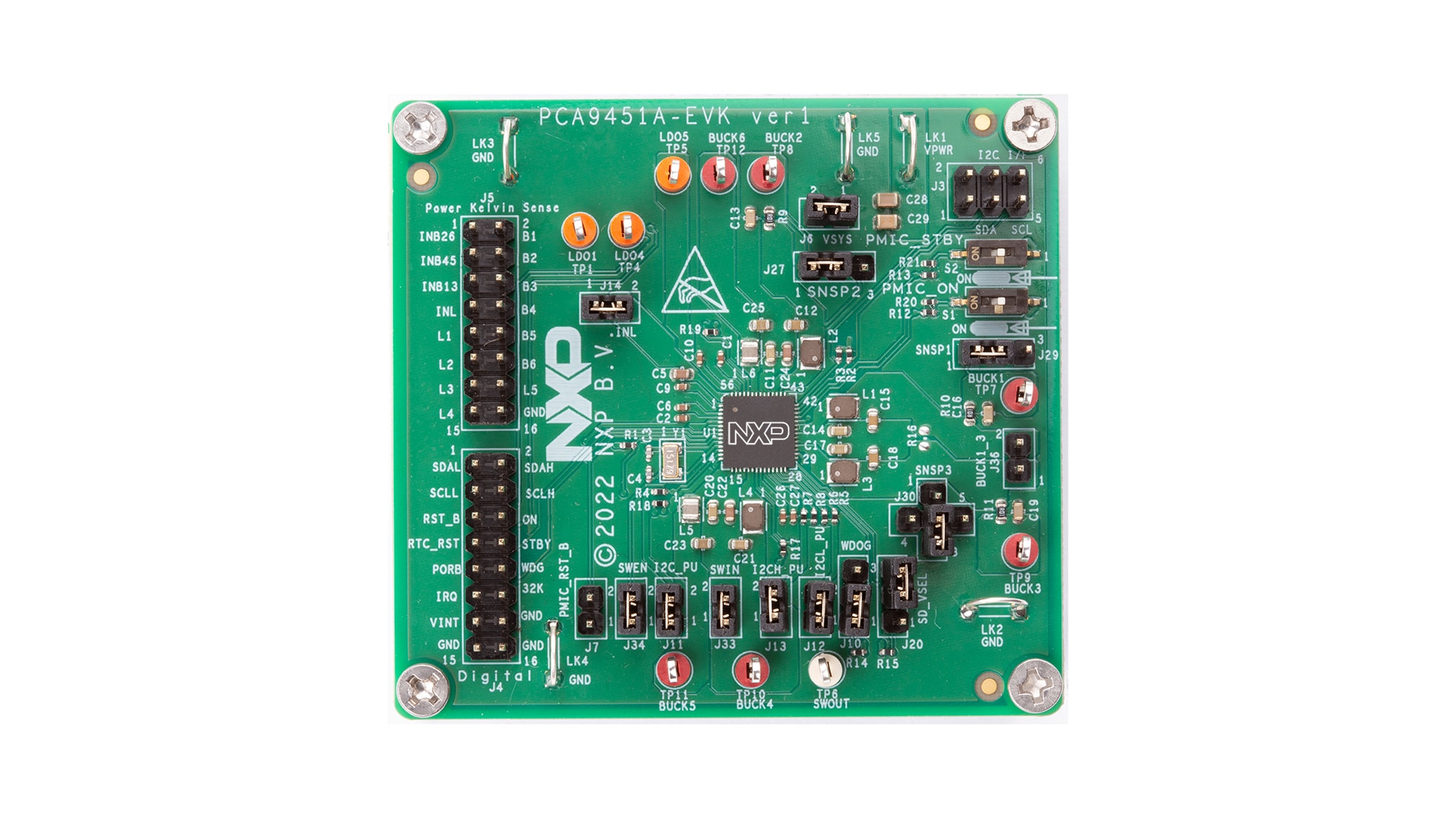- Assembled and tested PCA9451A evaluation board in an anti-static bag
