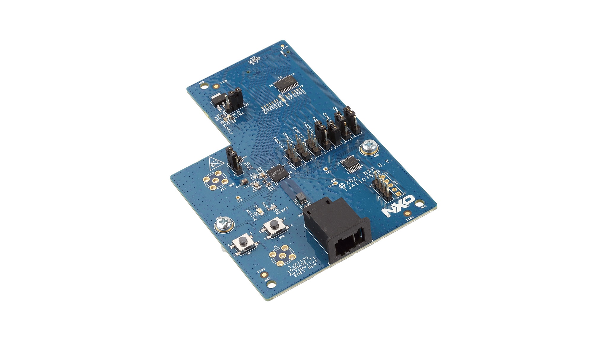 The TJA1103SDB SABRE development board is a purpose-built tool to evaluate the xMII data path in an application context together with a NXP processor and is specifically designed for software engineering tasks. To enable quick application prototyping, various NXP system development boards feature the common SABRE connector; for example, our latest S32K3 general-purpose MCU, S32G vehicle network processors and i.MX 8 processors.