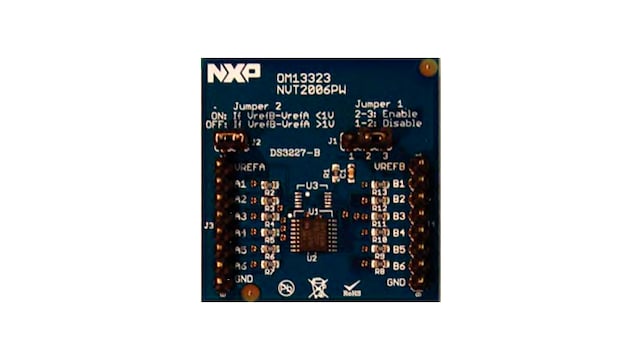 The NVT2003DP (OM13319), NVT2004TL (OM13316) and NVT2006PW (OM13323) demo boards are designed to evaluate the NXP® 3-channel, 4-channel and 6-channel bi-directional voltage level translators. The demo boards interface between device I/Os operating at different voltage levels. Since the NVT2003DP, NVT2004TL, and NVT2006PW devices are passive devices, pull-up resistors may be needed depending on the I/O interface type (totem pole or open-drain), a difference in translation voltage, and the translation direction (high to low-voltage, low to high-voltage, or bi-directional). The NVT2003DP, NVT2004TL and NVT2006PW devices allow translations between any voltages from 1.0 V to 5.5 V.