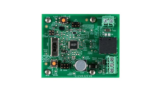 The S12VR32EVB is a development board for the S12 MagniV® S12VR32 16-bit MCUs for motor control relay based applications. The S12VR32 integrates an S12 CPU, a LIN physical interface, a 5V regulator system to supply the microcontroller and low-side drivers to control the relay.