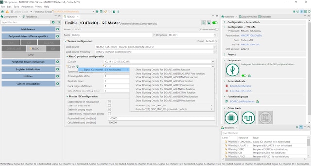 Component in the peripherals tool from the MCUXpresso configuration tools