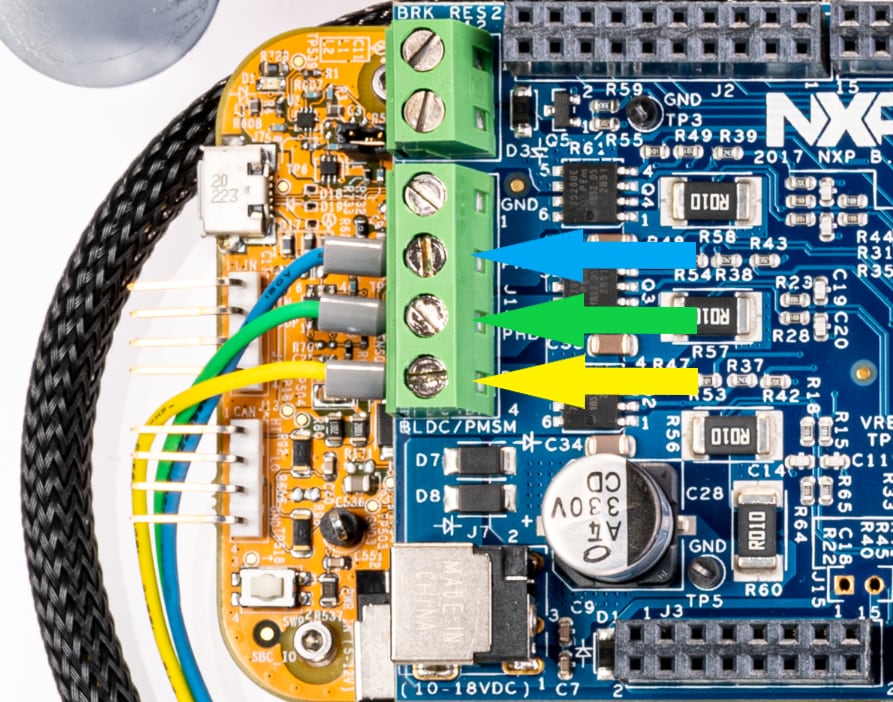 Ensure that the motor phase wires are in the following order, from phase A to phase C: