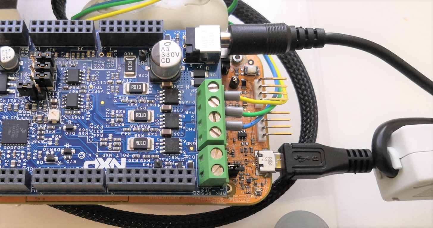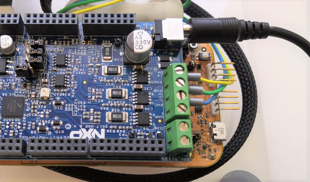 Ensure jumper J107 in S32K116EVB and DEVKIT-MOTORGD is in position 1-2 for powering board from 12 V power supply.