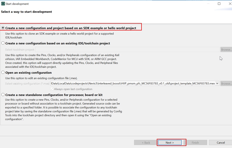 Use the MCUXpresso Config Tool to create a new project based on the SDK.