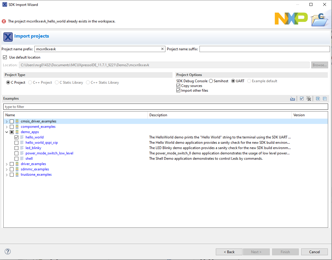 Clone an Example Project from MCUXpresso IDE