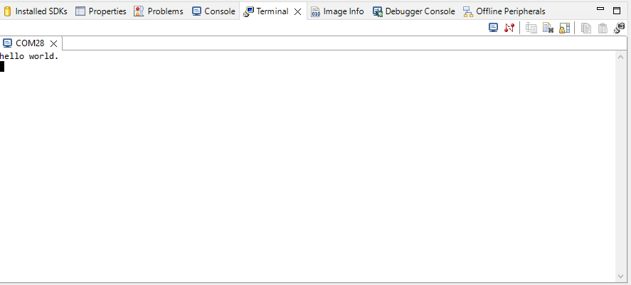 hello_world application is now running on the Cortex-M33After the MDK tools are installed, Cortex® Microcontroller Software Interface Standard (CMSIS) device packs must be installed to fully support the device from a debug perspective. These packs include things such as memory map information, register definitions and flash programming algorithms. Follow these steps to install the appropriate CMSIS pack. Please use MDK-Arm Microcontroller Development Kit (Keil)® version 5.33 or above.