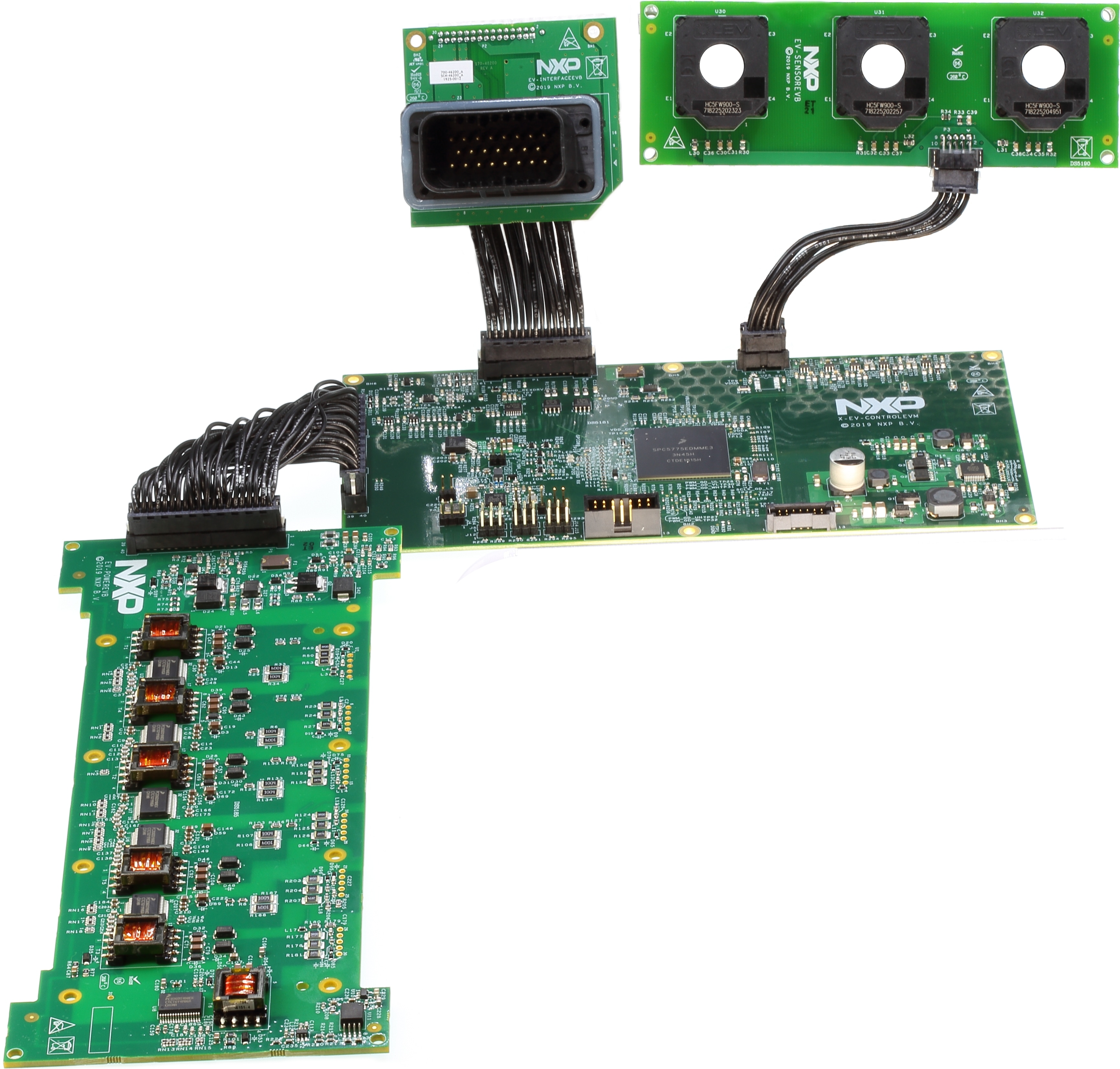 The EV-INVERTER is a reference design enablement kit containing NXP content to develop an EV three-phase traction motor inverter. The system is designed to drive the Fuji M653 IGBT module. This kit includes four PCBs as described in Section 1.1 "Kit contents/packing list", three cables used to interconnect the PCBs and basic configuration and drive software. PCB board layout and schematics and gerber files are available at EV Power Inverter Platform.
