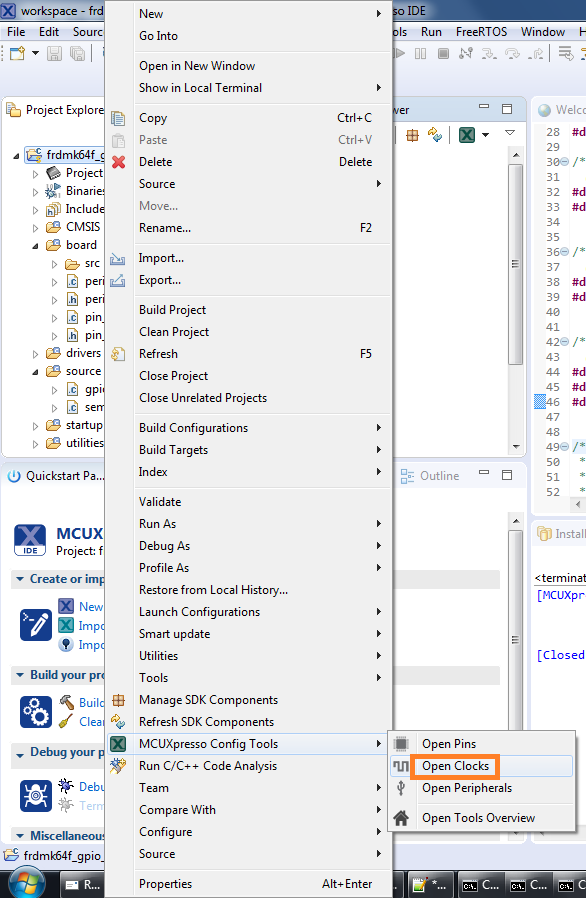 Next use the Clocks Tool that is part of the MCUXpresso Config Tools to change the clocks settings and change the rate that the LED blinks.