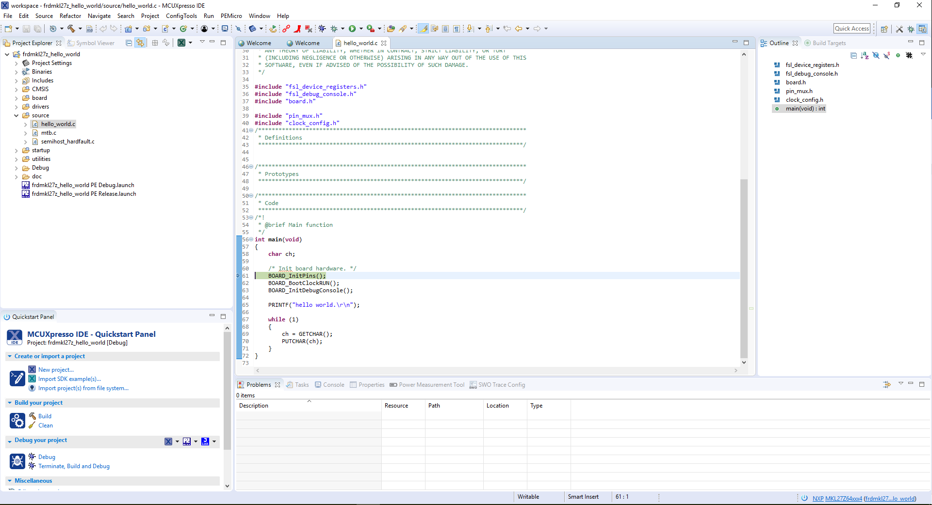 Use the guide below to learn how to open, build and debug an example application using the MCUXpresso IDE.