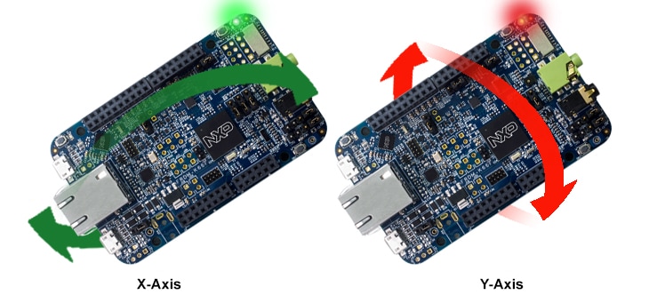 Your FRDM-K66F comes loaded with a "bubble level" demo that leverages the on-board accelerometer. When the board is flat, the RGB LED is turned off, and when the board is tilted, the green or red LEDs gradually illuminate based on the degree of tilt on the X- and Y-Axis.