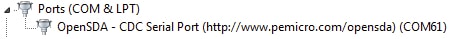 With the serial port driver installed, run your favorite terminal application to view the serial output from the MCU's UART. Configure the terminal to 115,200 baud rate, 8 data bits, no parity and 1 stop bit. To determine the port number of the FRDM-K66F's virtual COM port, open the device manager and look under the "Ports" group.
