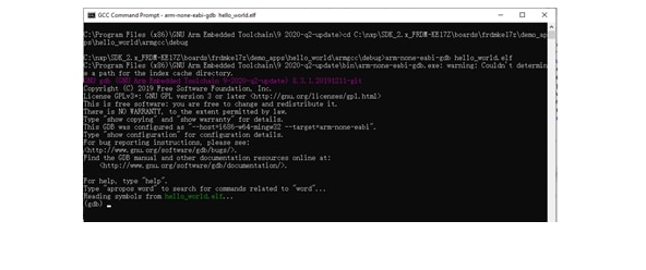 This section describes the steps to configure the command line Arm GCC tools to build, run, and debug demo applications and necessary driver libraries provided in the MCUXpresso SDK. The hello_world demo application is targeted for the FRDM-KE17Z Freedom hardware platform which is used as an example.