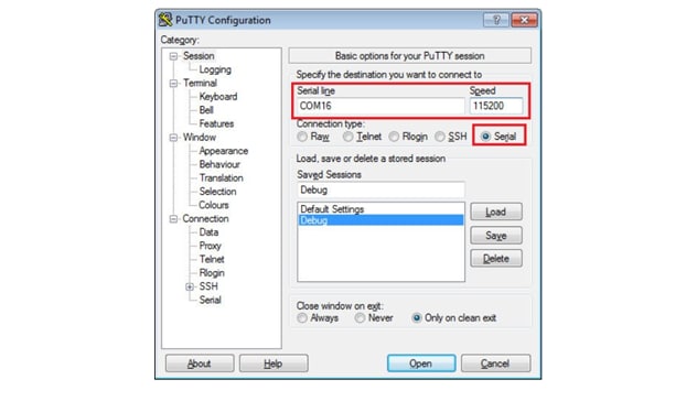 Figure 3. Terminal (PuTTY) configuration.