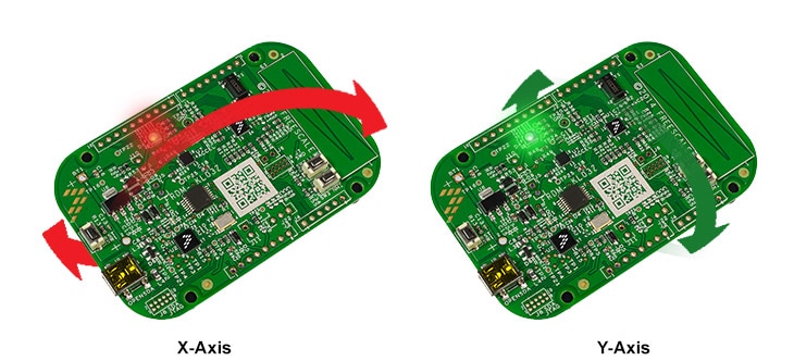 Your FRDM-KL03Z comes loaded with a "bubble level" demo that leverages the on-board accelerometer. When the board is flat, the RGB LED is turned off, and when the board is tilted, the red or green LEDs gradually illuminate based on the degree of tilt on the X- and Y-Axis.