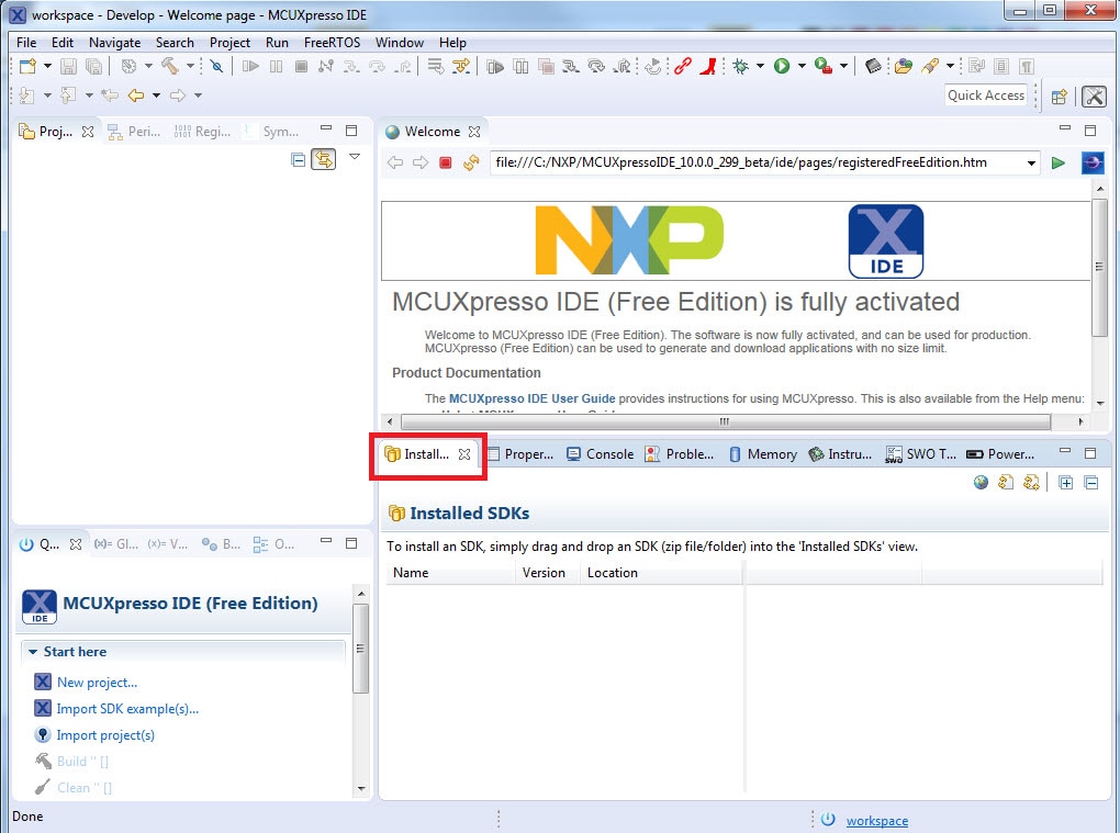 Use the guide below to learn how to open, build and debug an example application using the MCUXpresso IDE.