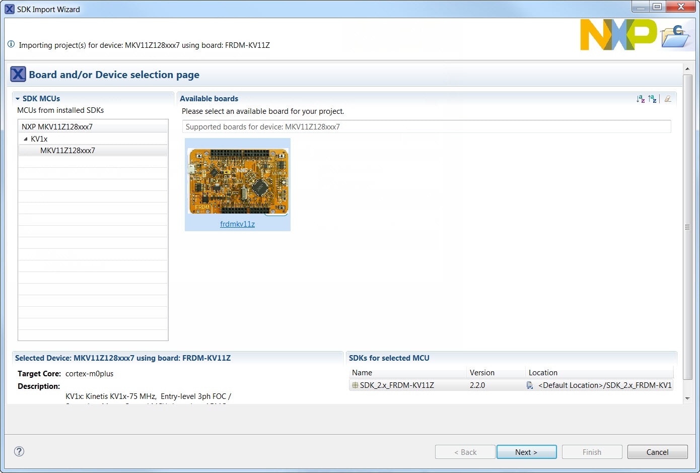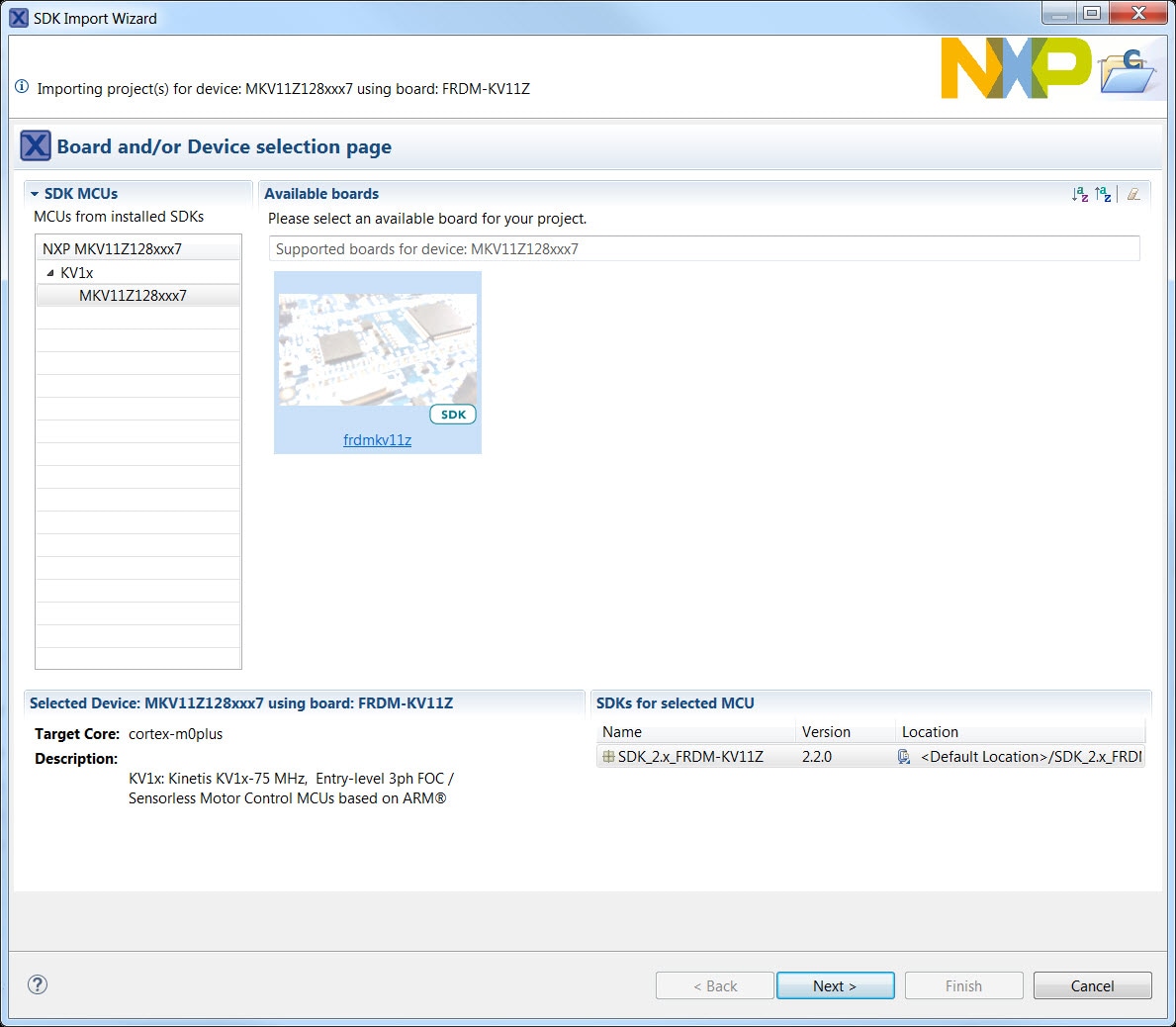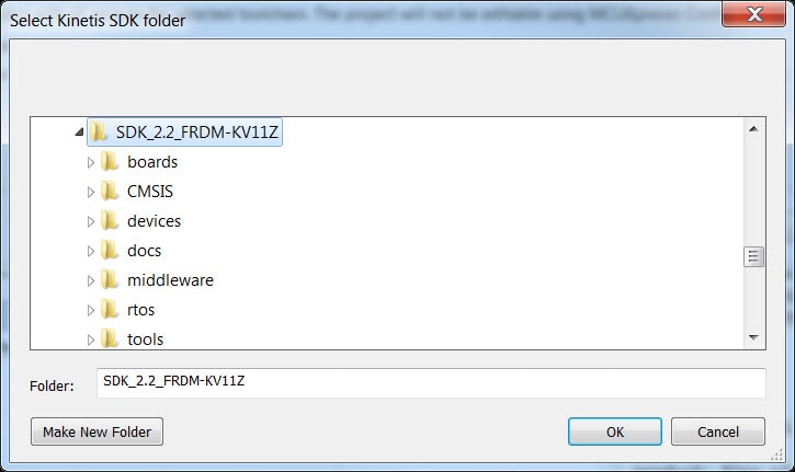 to the SDK boards folder of your SDK installation and select your board, the FRDM-KV11Z: