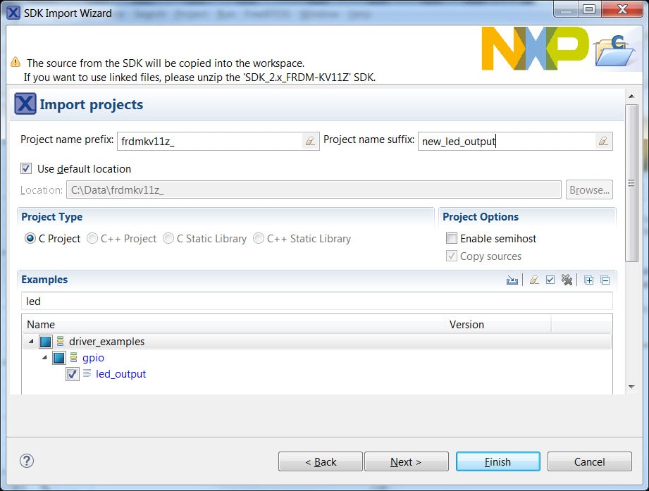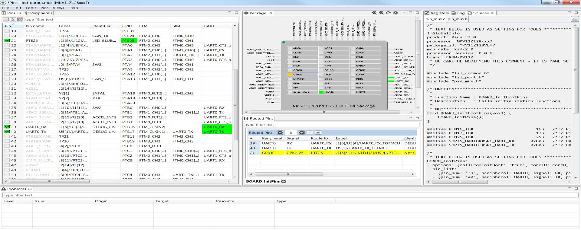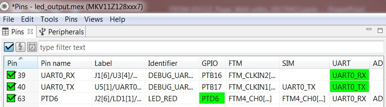 for the FRDM-KV11Z for the led_output example configuration. Now,