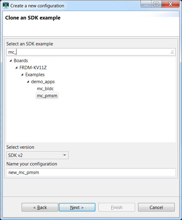 Note: This procedure for the two projects mc_pmsm and mc_bldc does not compile due to the library files not being copied with the project.