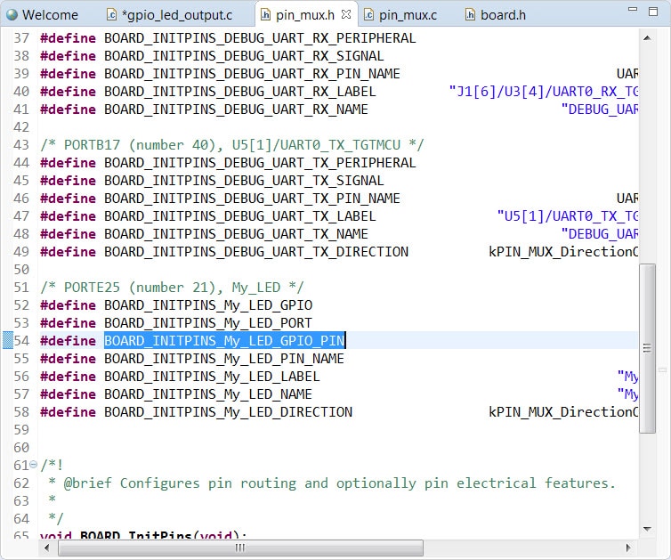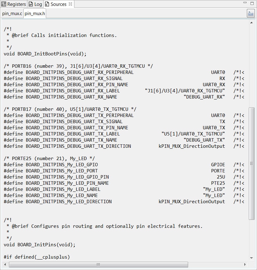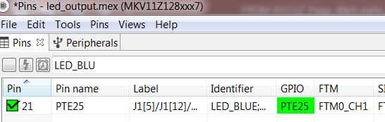 searching for PTE25. This will add a #define to the pin_mux.h file