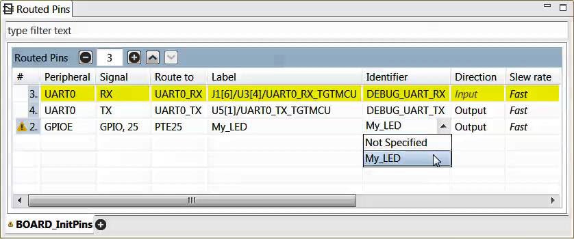 identifier to "My_LED" next to PTE25 in the Pins table