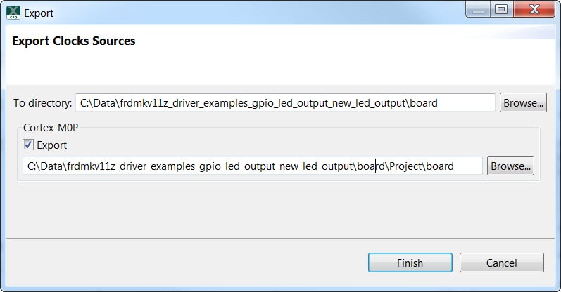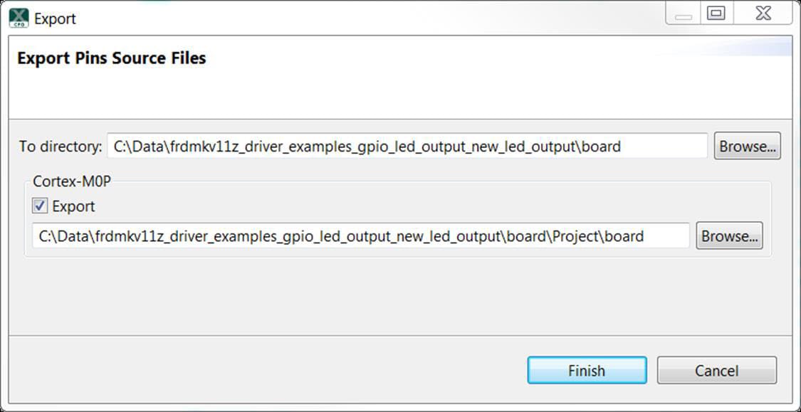 Select the directory to export the pin_mux.c and pin_mux.h files. In