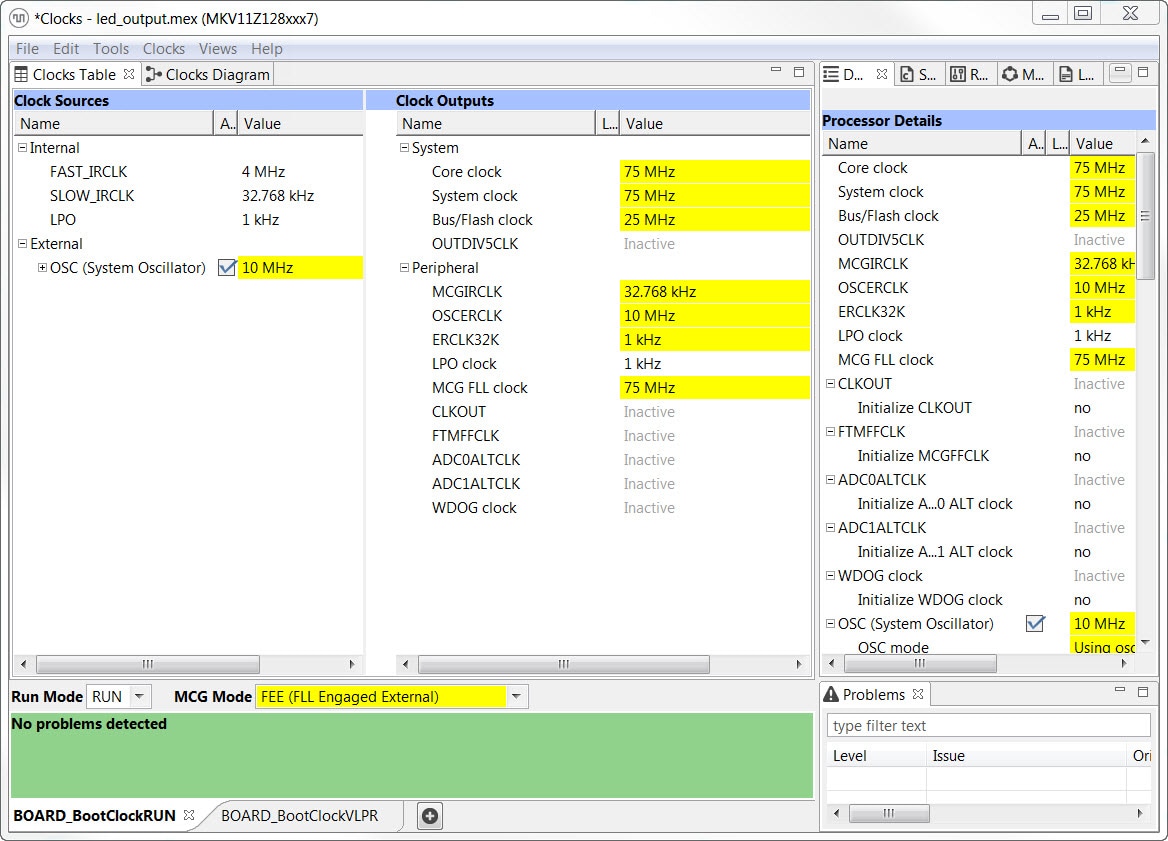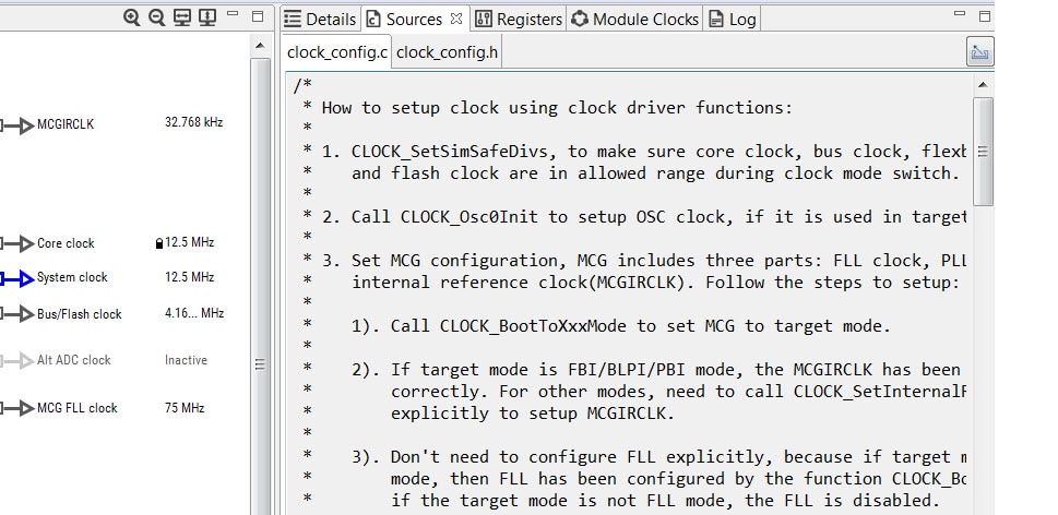 Next use the Clocks Tool that is part of the MCUXpresso Config Tools to change the clock settings and change the rate that the LED blinks.