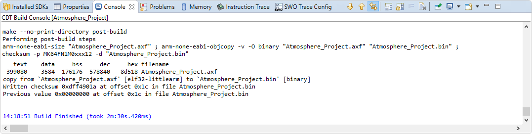 Wait for the application to be programmed in the K64F internal flash and the debug session to start