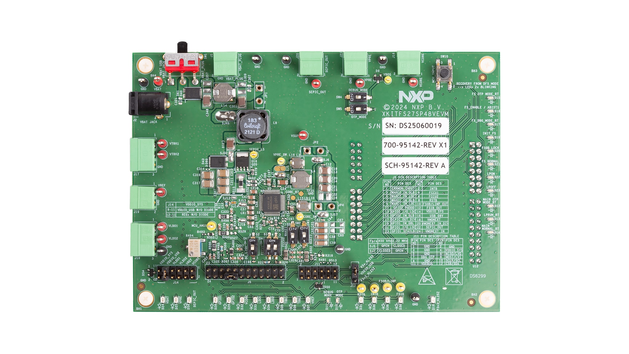 The KITFS27-SP48VEVM provides the flexibility needed to play with all the features of the device and to take measurements in the main sections of the application. The FRDM-KL25Z board connected to the kit, combined with the FS27 NXP GUI for Automotive PMIC Families software, allows full configuration and control of the FS27 SBC. The LQFP48 socket on the board allows different samples to be tested or programmed.