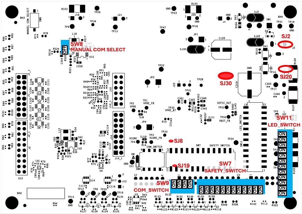 Bypass JP1: jumper for SEPIC regulator input inductor current measurement |