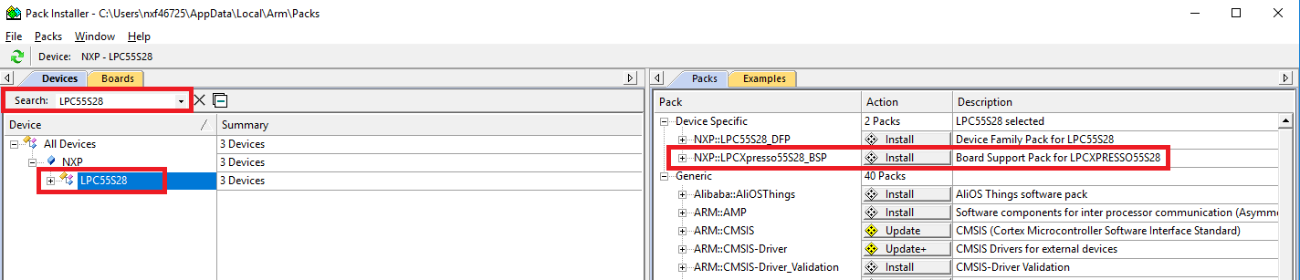 After the MDK tools are installed, Cortex® Microcontroller Software Interface Standard (CMSIS) device packs must be installed to fully support the device from a debug perspective. These packs include things such as memory map information, register definitions and flash programming algorithms. Follow these steps to install the appropriate CMSIS pack.