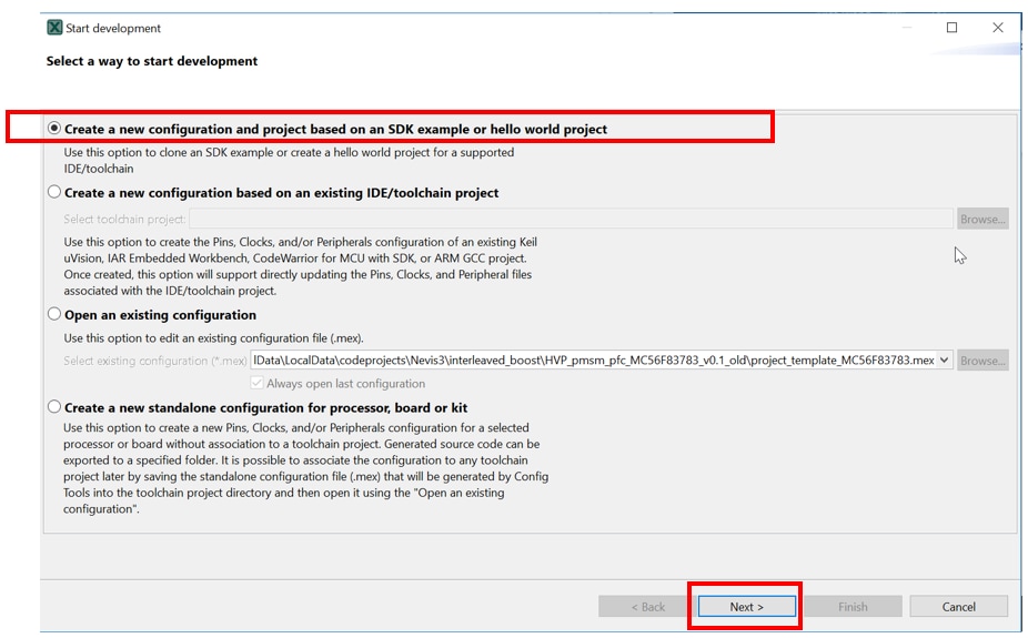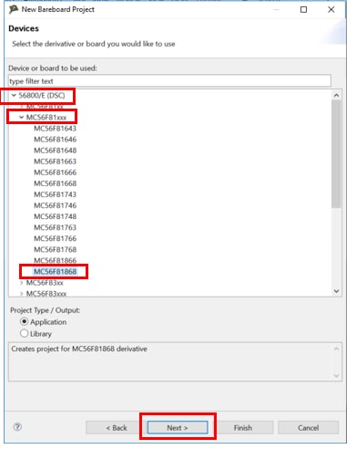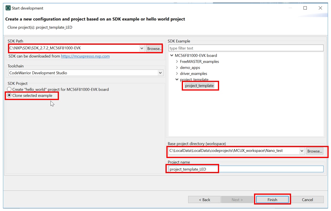 Option B: Copy an template project in ‘ Project Template MC56F81xxx ’ and modify it. The template projects are extracted from related packages and contains all the necessary drivers.