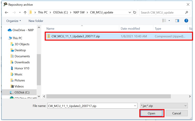 Navigate to the update file downloaded CW_MCU_11_1_Update3_200717.zip ,