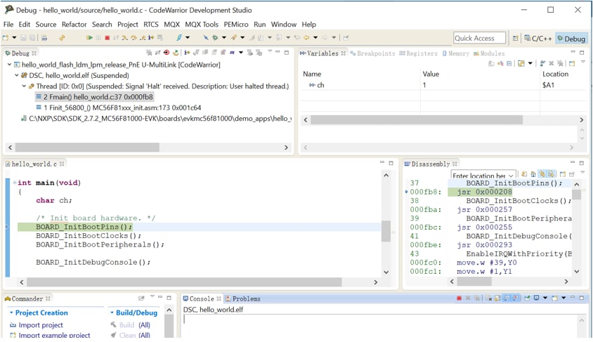 Get CodeWarriorIn order to support MC56F81xxx, it's necessary to update the CodeWarrior IDE.