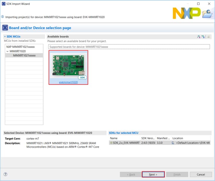 Click below to download a pre-configured SDK release for the MIMXRT1064-EVK. Learn about SDK