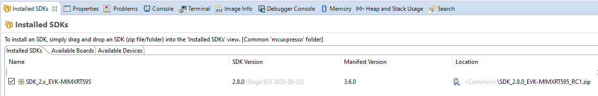 You can also use the online SDK Builder to create a custom SDK package for the MIMXRT595-EVK.